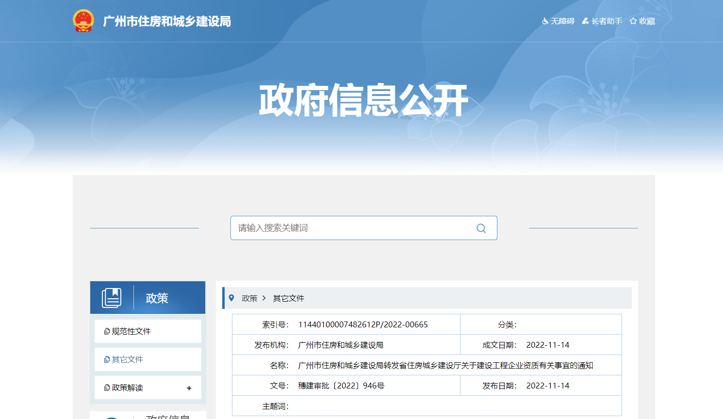 廣州市住房和城鄉建設局轉發省住房城鄉建設廳關于建設工程企業資質有關事宜的通知